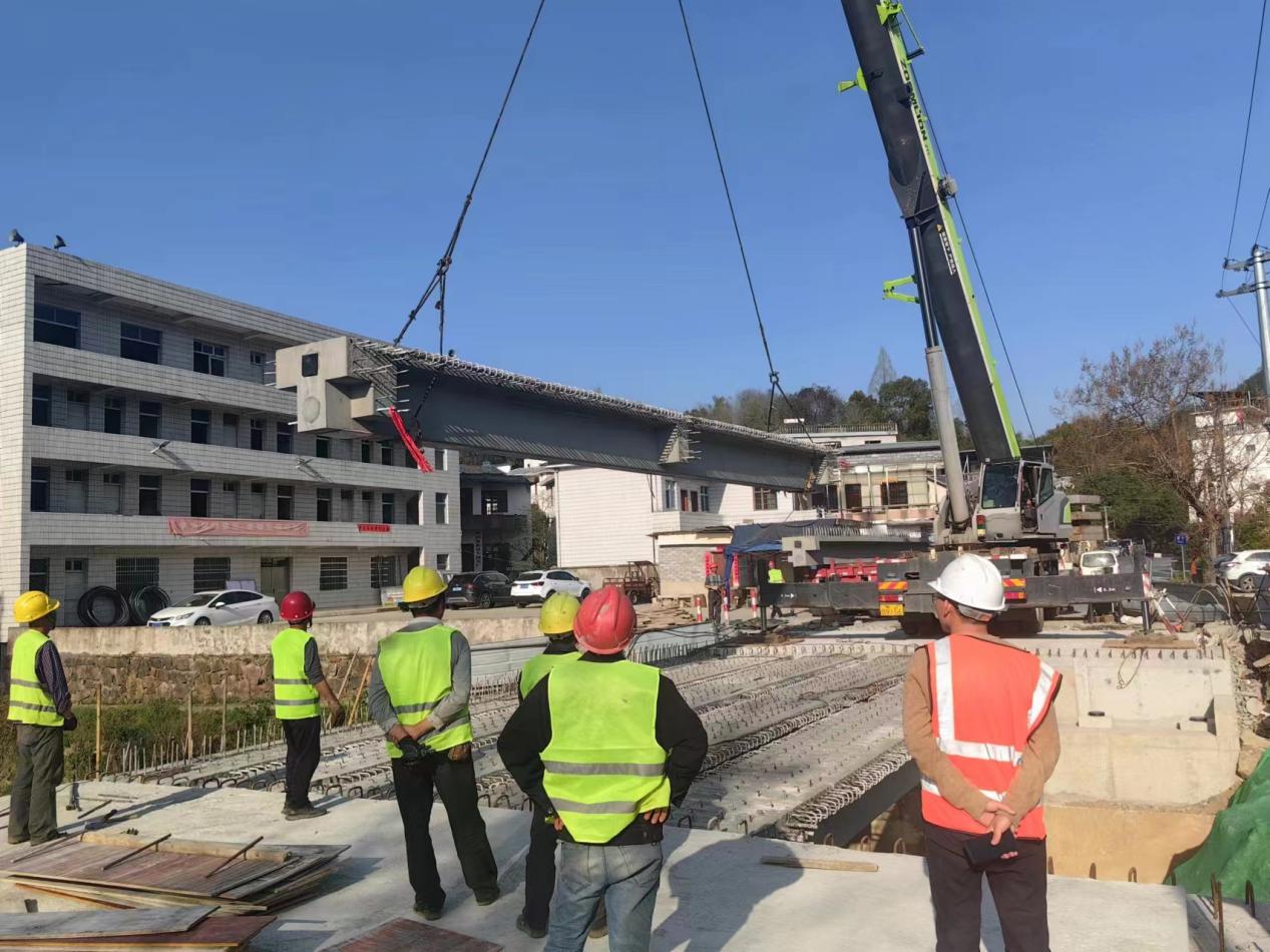 架設(shè)過程中我公司安全分管副總張遠(yuǎn)林、歙縣公路局領(lǐng)導(dǎo)全程在現(xiàn)場(chǎng)統(tǒng)籌指揮;我公司安全部和歙縣交警隊(duì),負(fù)責(zé)對(duì)現(xiàn)場(chǎng)交通進(jìn)行指揮管理,保障吊裝作業(yè)過程中的生產(chǎn)安全。