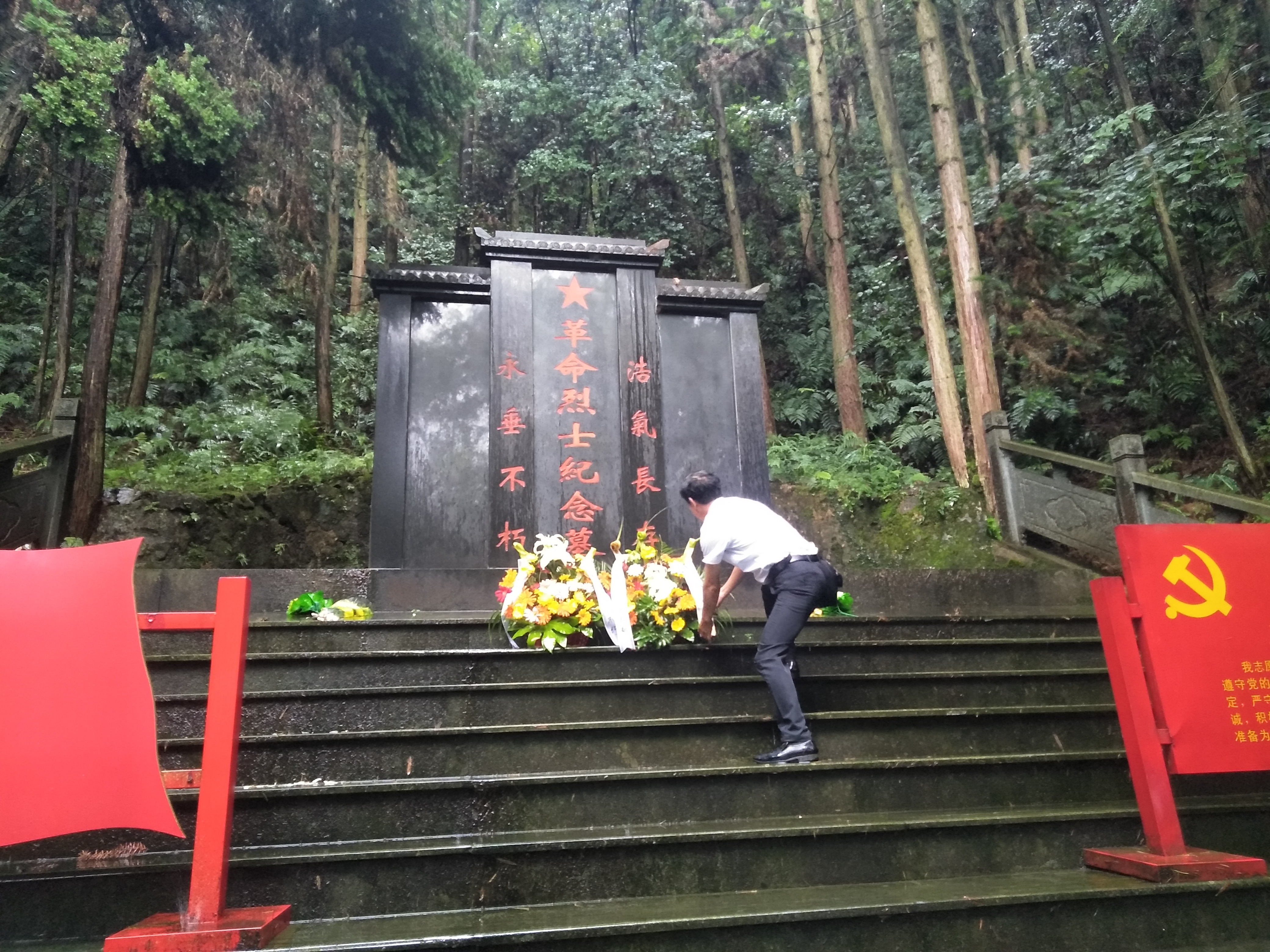 20日中午,參觀人員一行來(lái)到烈士陵園,并由李惠明書(shū)記代表黃山新洲建設(shè)集團(tuán)有限公司黨支部在革命烈士紀(jì)念墓前獻(xiàn)上鮮花,所有人員宣讀入黨誓詞。