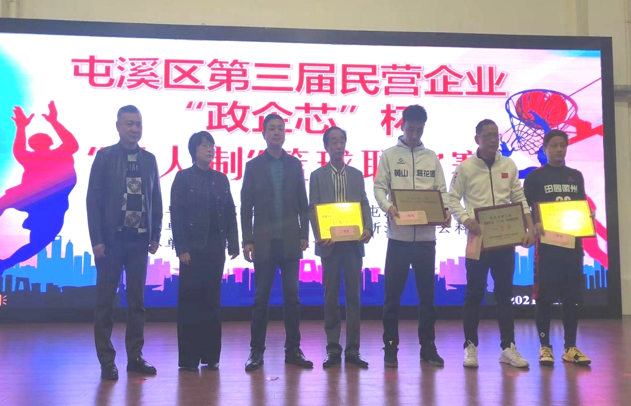 為加強(qiáng)屯溪區(qū)各民營企業(yè)之間的聯(lián)系、交流,積極響應(yīng)主辦單位屯溪區(qū)委統(tǒng)戰(zhàn)部和屯溪區(qū)工商聯(lián)的要求,2021年11月13日,集團(tuán)公司組織新洲籃球隊(duì)隊(duì)員姚駿杰、胡志勇、馮曙朝、李洋和汪程(外援)參加了屯溪區(qū)第三屆民營企業(yè)“政企芯”杯“三人制”籃球聯(lián)誼賽,經(jīng)過耗時一天7場循環(huán)制比賽,在新洲籃球運(yùn)動員的勇于拼搏,積極配合和不懈努力下,獲得了籃球聯(lián)誼賽三等獎。