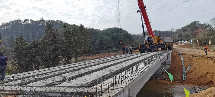 鮑家橋全長30.04米,橋梁全寬8.5m,凈寬7.5m,橋梁結構為1×20m預應力砼密肋式簡支T梁。為順利完成梁板吊裝作業(yè),公司精心組織,在梁板吊裝前認真做好安全技術交底、設置警戒區(qū)域等前期準備工作,在吊裝當日公司安全部前往施工現(xiàn)場監(jiān)督指導,確保安全施工,保障該橋梁主體工程順利完成。