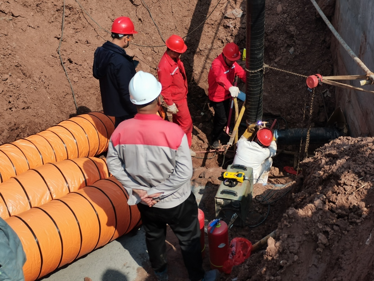 動(dòng)火連頭焊接施工現(xiàn)場(chǎng)