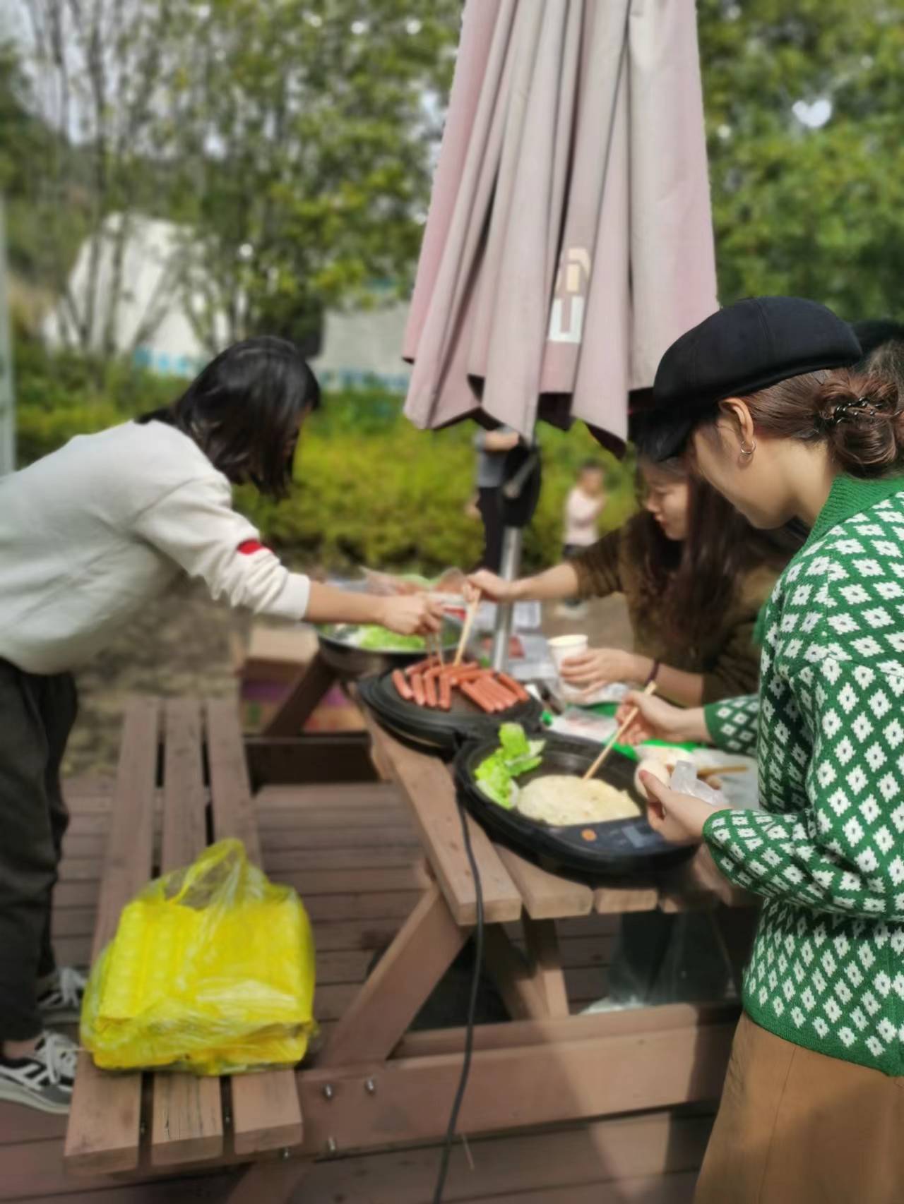 中午時(shí)分,順利抵達(dá)露營(yíng)地,在美麗的黃山下,暫時(shí)告別緊張的工作旋律,緊隨著冬天的步履,走到戶外呼吸清新空氣,感受大自然的魅力。擺放烤架、分類(lèi)食物、生火、烤制,大家相互配合,分工協(xié)作,一邊享受著美食,一邊分享著生活和工作中的趣事,歡聲笑語(yǔ)隨著縷縷炊煙縈繞在空中,談笑間,忘卻了煩惱,緩解了疲勞,充分體驗(yàn)了野外集體生活的樂(lè)趣。