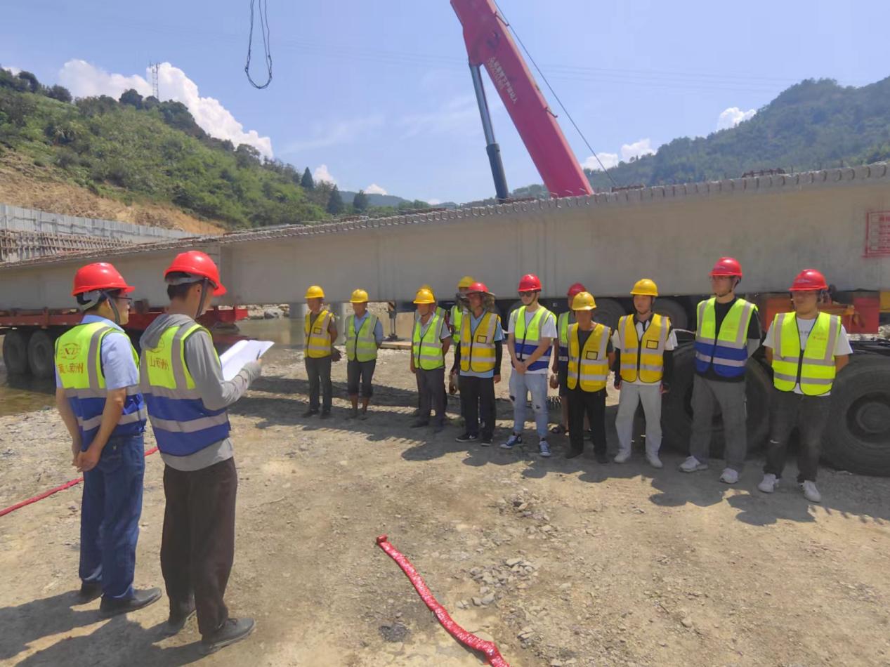 為確保梁板架設(shè)工作順利進(jìn)行,項(xiàng)目部高度重視,精心組織橋梁下部及預(yù)制梁板驗(yàn)收、專項(xiàng)方案審批,提前安排隊(duì)伍進(jìn)場(chǎng),熟悉施工環(huán)境和技術(shù)方案,對(duì)梁板架設(shè)人員進(jìn)行安全教育培訓(xùn)和技術(shù)交底,并進(jìn)行現(xiàn)場(chǎng)監(jiān)督,嚴(yán)格把控梁板架設(shè)的過程及安全性,全方位保障了架梁工作的順利進(jìn)行。