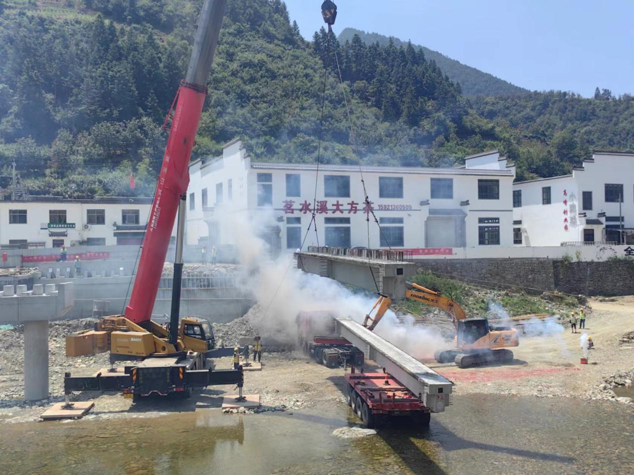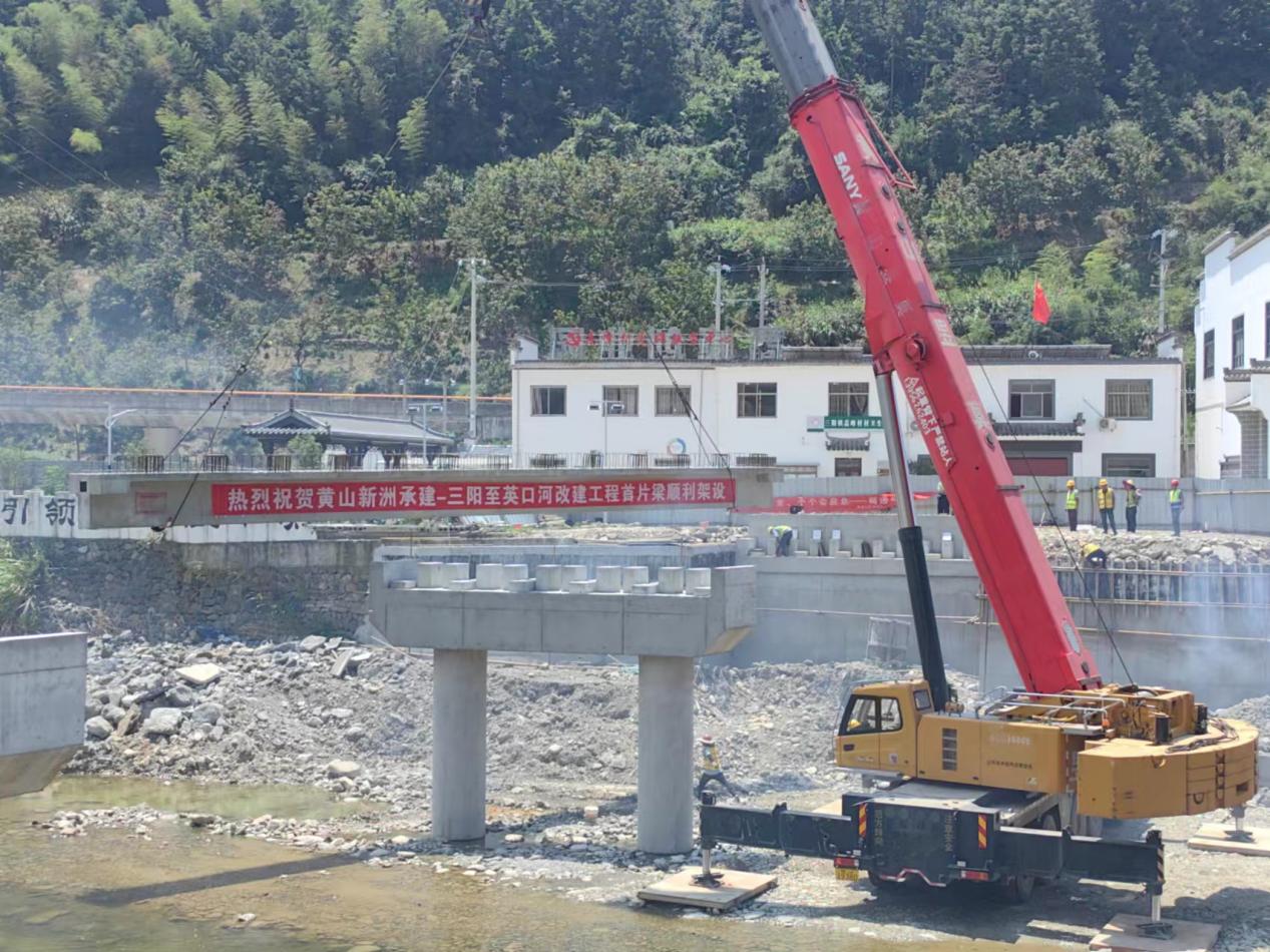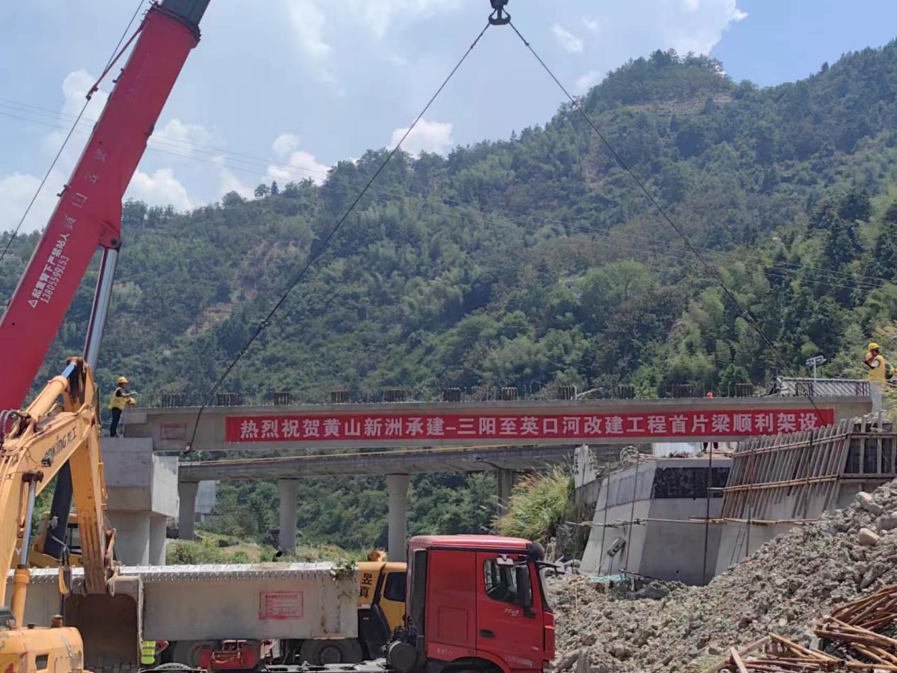 連日的持續(xù)高溫?fù)醪蛔≈啡说牟椒ィ?月5日上午,炎炎烈日之下,隨著煙花爆竹的一聲聲爆炸,我公司承建的歙縣三陽(yáng)-英坑河口農(nóng)村道路改建工程,K1+148線外橋第一片梁板架設(shè)成功。
