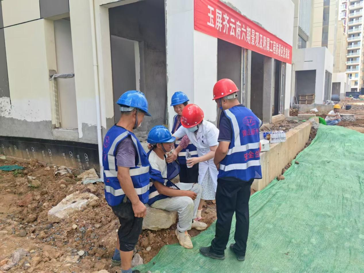 2024年8月15日,隨著炎炎夏日的持續(xù),我公司承建的玉屏齊云府六期景觀及附屬工程項(xiàng)目上由黨支部、工會(huì)、工程技術(shù)部聯(lián)合成功舉行了一場高溫防中暑應(yīng)急演練。此次演練旨在提高項(xiàng)目團(tuán)隊(duì)在高溫環(huán)境下的應(yīng)急處理能力,確保施工作業(yè)人員