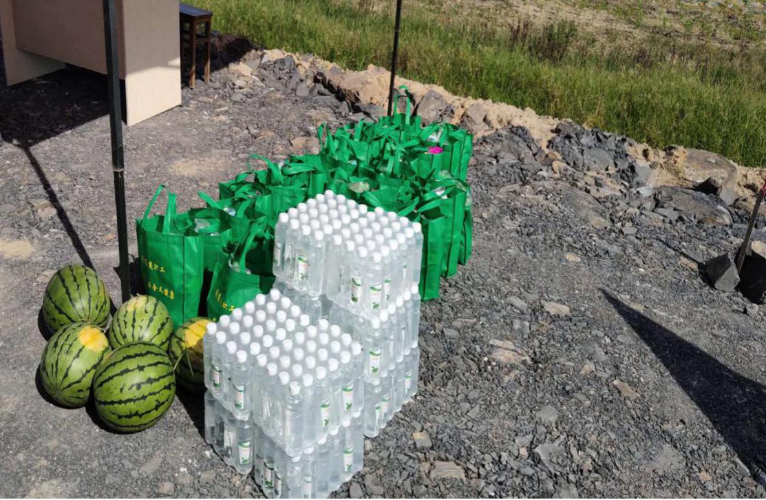 在慰問現(xiàn)場,領導們詢問了生產,生活情況,向他們不畏高溫、 冒著酷暑仍然堅守在工作崗位上表示感謝,并叮囑廣大員工一定要把安全放在第一位,同時囑咐大家在現(xiàn)場要多注意飲水,合理安排時間,注重勞逸結合。同時要求項目經理一定要根據天氣情況合理安排施工,落實好高溫防護活動及應對措施,把員工的疾苦放在心上,開展好積極應對高溫天氣給工作帶來的困難與不便,確保工程建設各項工作有條不紊地進行。此舉深深感動和鼓舞了現(xiàn)場施工人員,一線員工紛紛表示“ 清涼在口,溫暖在心,我們的干勁更足了,我們一定努力工作保質保量完成工程建設。”