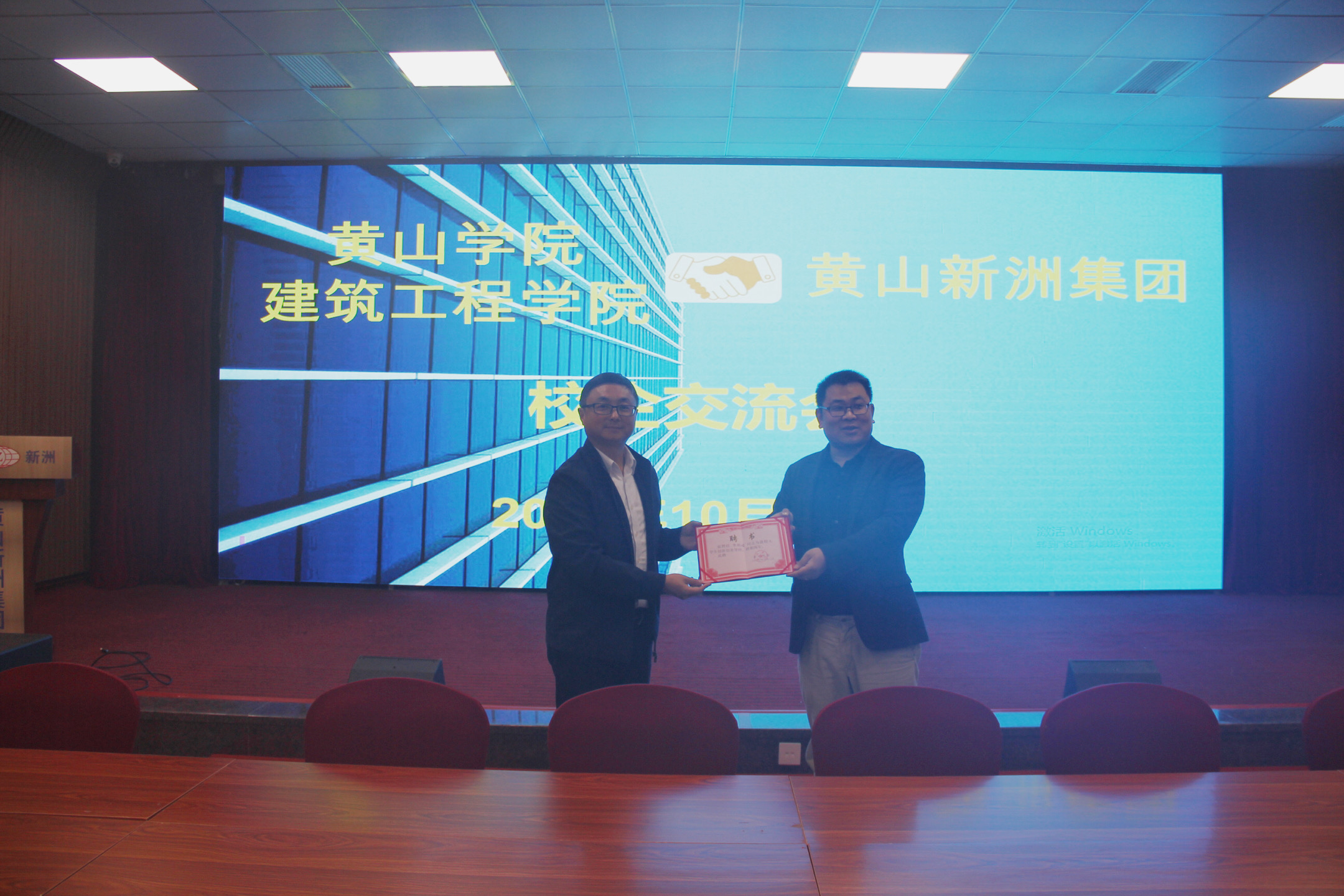 參會(huì)人員共同觀看了新洲集團(tuán)企業(yè)宣傳片后,校企雙方代表分別就如何培養(yǎng)一批BIM應(yīng)用能力實(shí)用性人才、利用大數(shù)據(jù)提升企業(yè)中標(biāo)率、企業(yè)專利申報(bào)、產(chǎn)學(xué)研結(jié)合等方面深入開展溝通交流。會(huì)議間隙,黃山學(xué)院建筑工程學(xué)院正式為新洲集團(tuán)總經(jīng)理李利成同志頒發(fā)黃山學(xué)院大學(xué)生創(chuàng)新創(chuàng)業(yè)導(dǎo)師的聘書,這也標(biāo)志著我司與黃山學(xué)院在校企合作方面拉開了新的篇章。